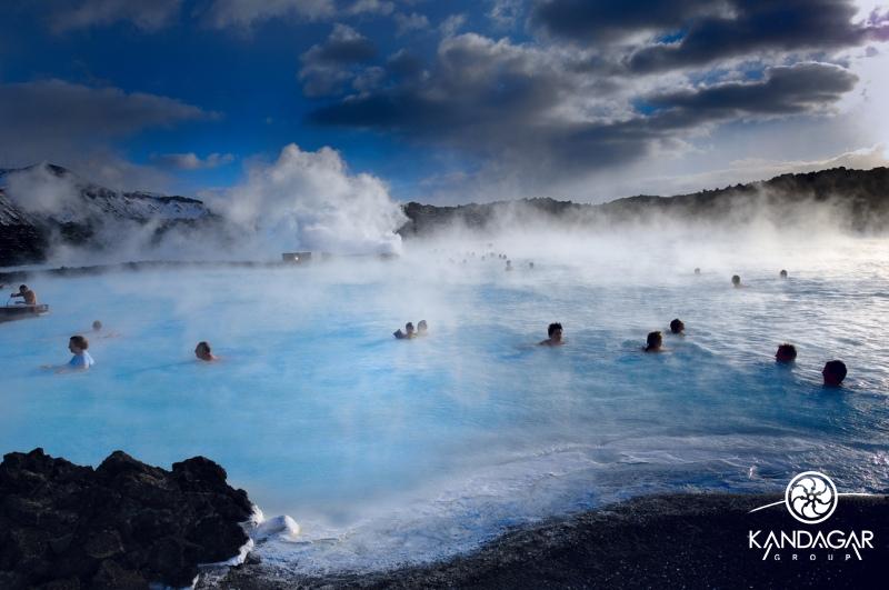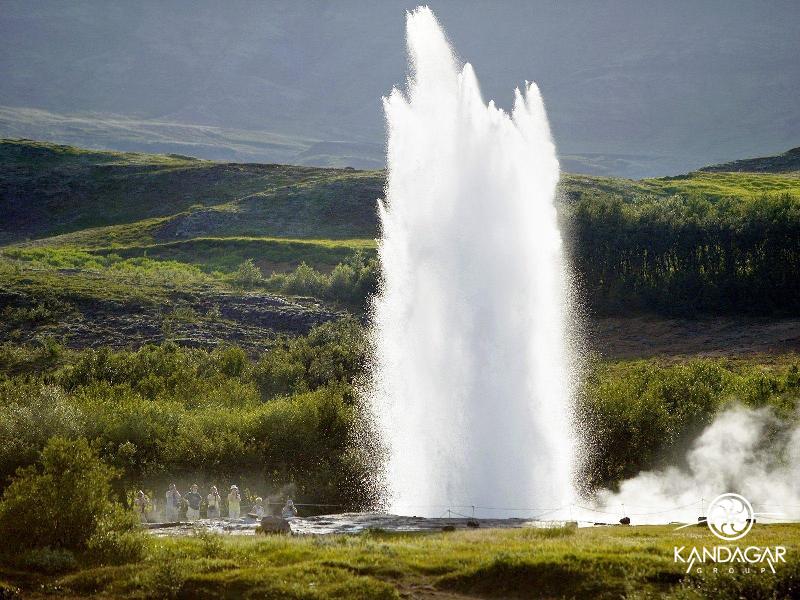 Гейзерные поля сами по себе - одна из визитных карточек страны. Всего их обнаружено здесь более 250 групп, включающих более 7 тыс. отдельных горячих источников - это самое большое количество гейзеров на единицу площади в мире. Даже само слово «гейзер» исландского происхождения и означает «бьющий струей». Обширное гейзерное поле Хаудакалур лежит на юге Исландии, где расположен некогда самый большой гейзер страны - Гейсер (Большой Гейзер), но более-менее периодично здесь извергается только гейзер Строккур. Вокруг него лежит множество выходов подземных горячих вод в виде бездонных колодцев, наполненных до краев удивительно голубой прозрачной водой. Не менее колоритны районы ледника Торфа к востоку от вулкана Гекла, вулкан Кверкфьёлль, район Гримских озер у ледника Ватна, районы Нама, Керлингарских и Кверкских гор,залива Крису, геотермальные поля Кьёлюр, Ландманналёйгар, Несявеллир, Онавфельснес, Рейкир и другие, а также горячие источники и поля разноцветной земли» возле города Хверагерди. Некоторые источники выбрасывают на поверхность воду, перегретую в подземных «котлах» до температуры около +750 С. К примеру, самый крупный горячий источник в Исландии - Дейльдартунгухвер, дает ежесекундно более 150 литров кипящей воды. Местные жители используют подземный кипяток для обогрева жилищ и выпаривания соли из морской воды, а также для создания многочисленных бассейнов с горячей водой, столь популярных в здешнем холодном климате.