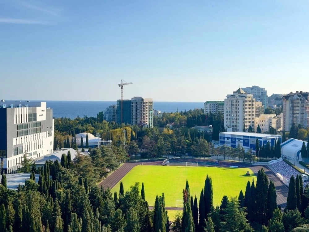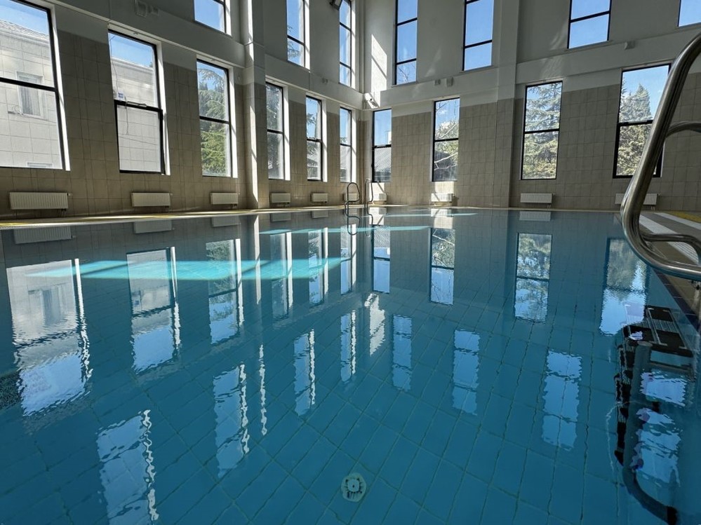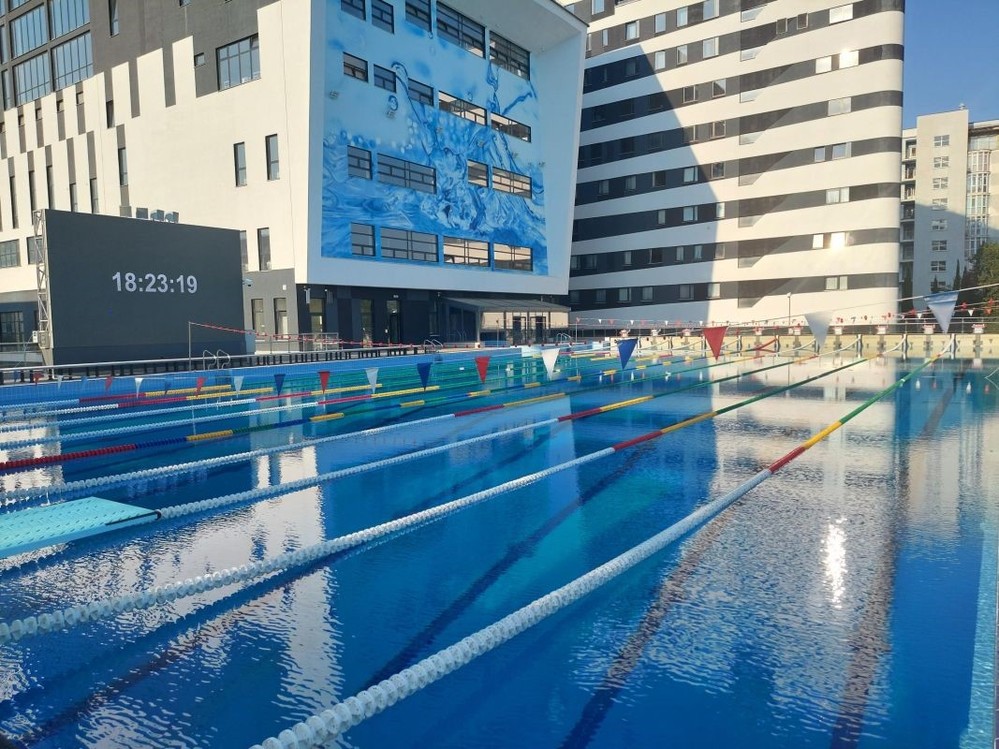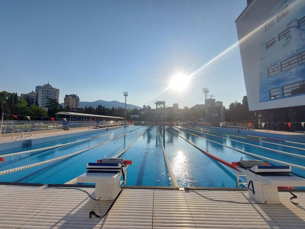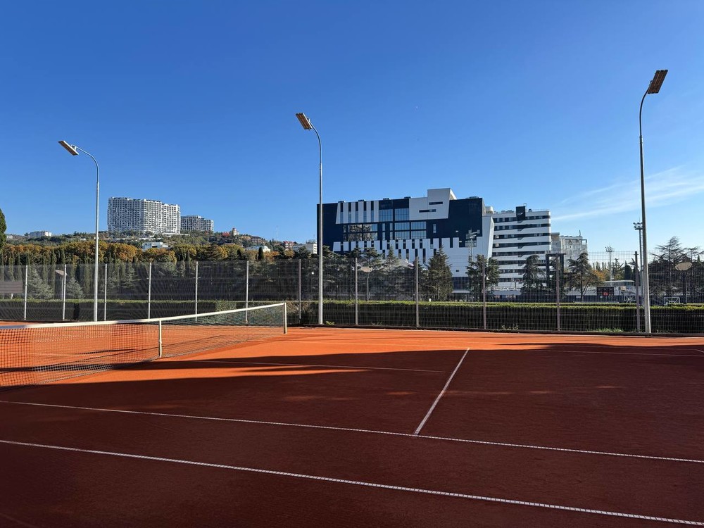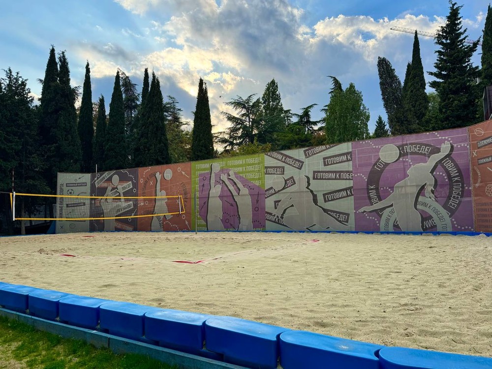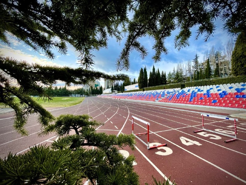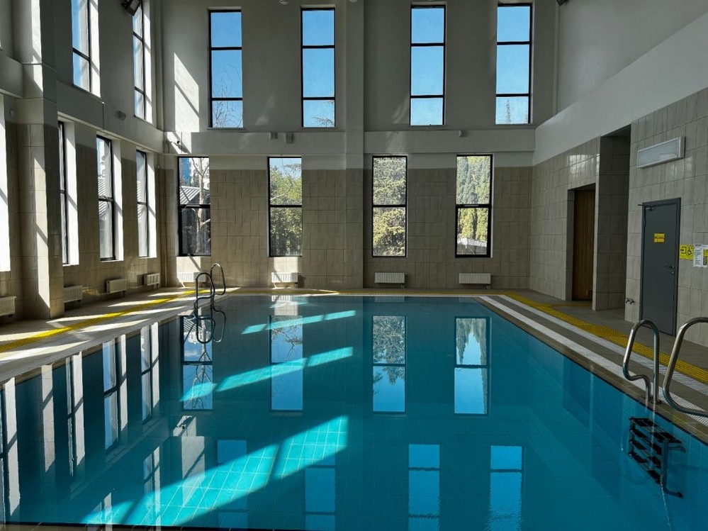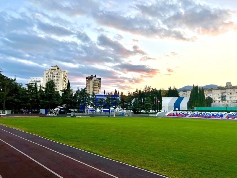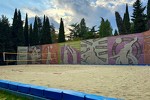 собственный галечный оборудованный (теневые навесы, раздевалки; лежаки, шезлонги, зонты). Городской пляж расположен на расстоянии 300 м. от территории комплекс, собственный пляж расположен в 800 метрах от жилых корпусов. -открытый спортивный подогреваемый бассейн 50 метров (10 дорожек) с пресной водой (минимальная глубина бассейна - 2 метра, максимальная - 6 метров) -спортивные сооружения, -собственный гидротермальный комплекс -центральный спортивный стадион с футбольным полем с натуральным покрытием -футбольное поле с синтетическим покрытием -тренажерный зал -зал борьбы -гимнастический зал -теннисные корты -спортивное сооружение для ОФП -наклонно-кроссовая беговая дорожка - 3 крытых универсальных плоскостных сооружения. -пункт питания на 260 посадочных мест