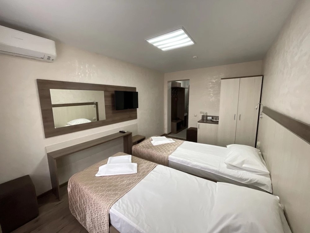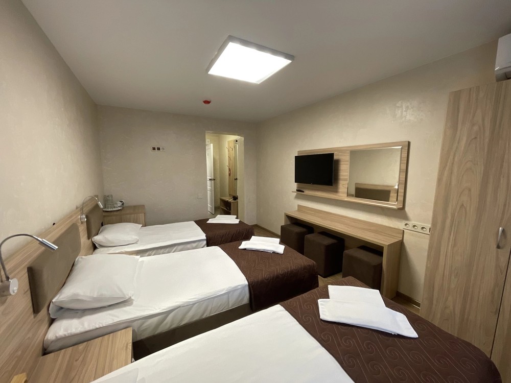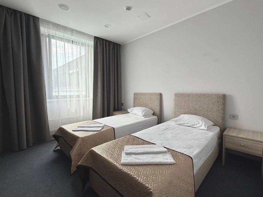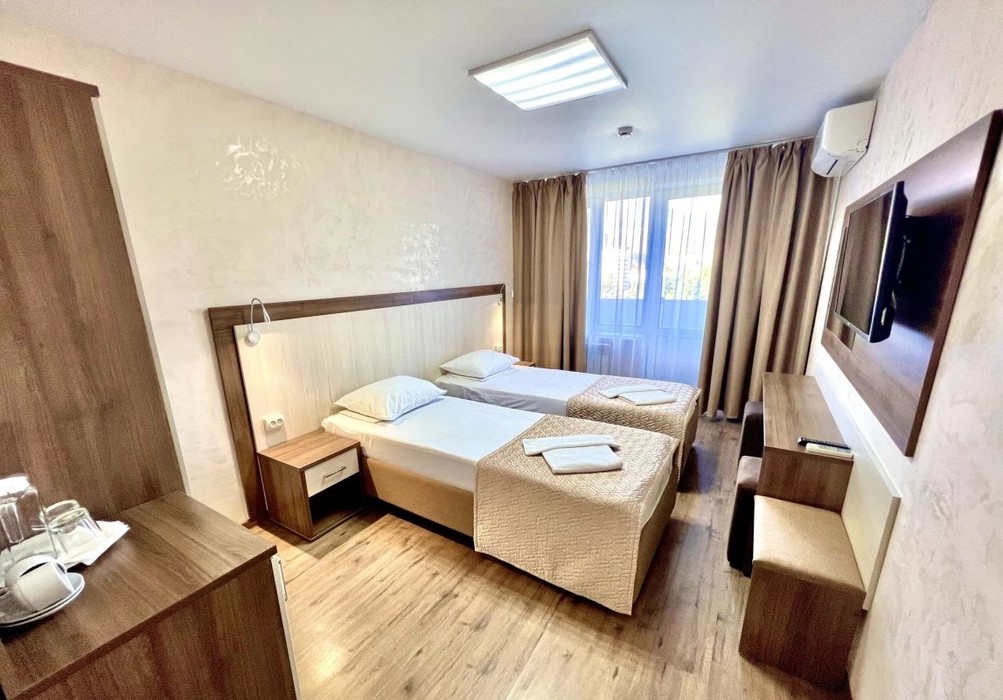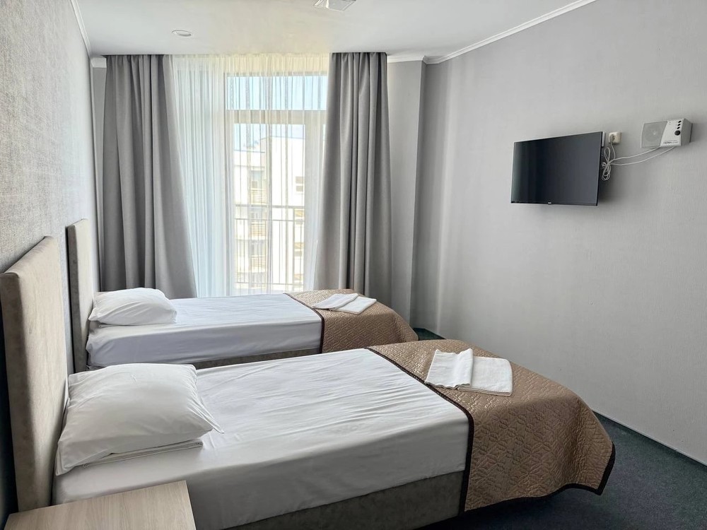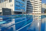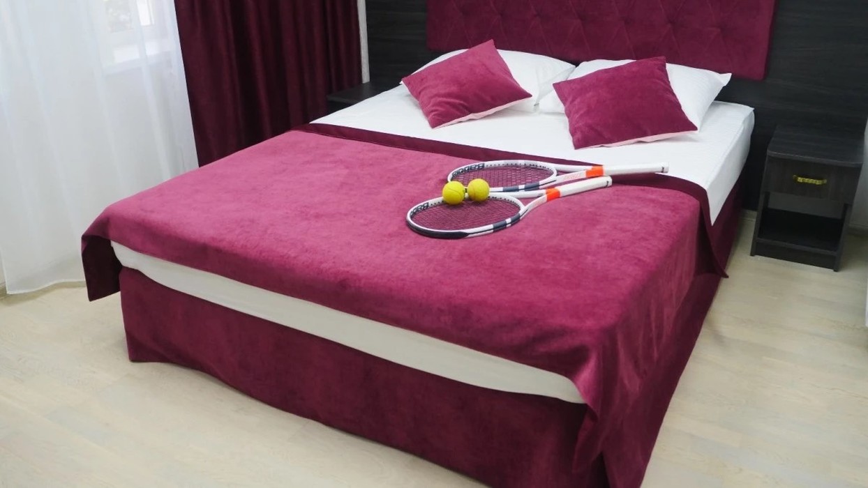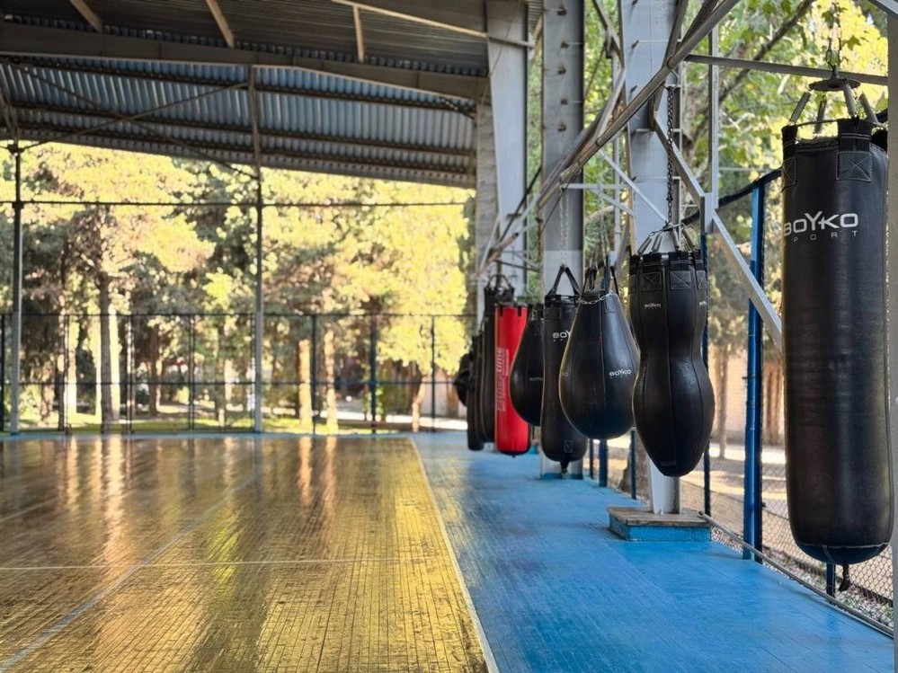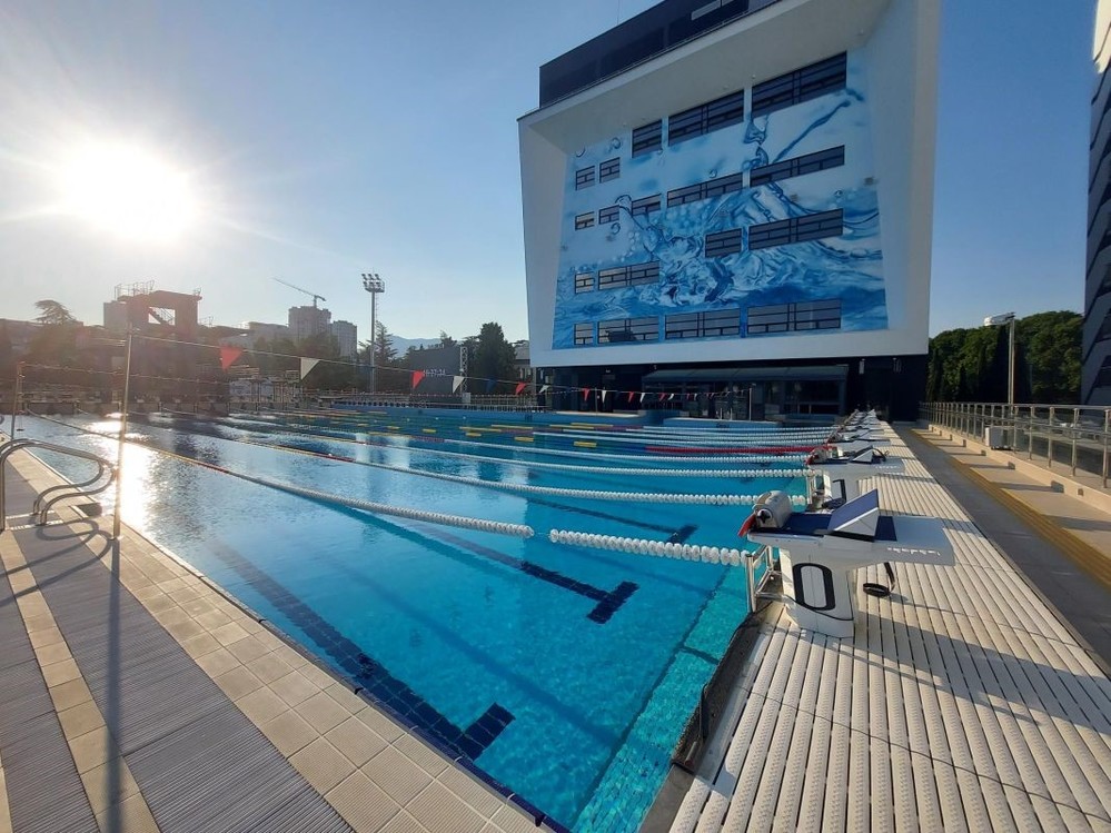 собственный галечный оборудованный (теневые навесы, раздевалки; лежаки, шезлонги, зонты). Городской пляж расположен на расстоянии 300 м. от территории комплекс, собственный пляж расположен в 800 метрах от жилых корпусов. -открытый спортивный подогреваемый бассейн 50 метров (10 дорожек) с пресной водой (минимальная глубина бассейна - 2 метра, максимальная - 6 метров) -спортивные сооружения, -собственный гидротермальный комплекс -центральный спортивный стадион с футбольным полем с натуральным покрытием -футбольное поле с синтетическим покрытием -тренажерный зал -зал борьбы -гимнастический зал -теннисные корты -спортивное сооружение для ОФП -наклонно-кроссовая беговая дорожка - 3 крытых универсальных плоскостных сооружения. -пункт питания на 260 посадочных мест