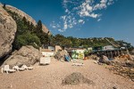 расположен на парковой территории 6 га у подножия мыса Айя в бухте Ласпи (между Севастополем и Ялтой)
