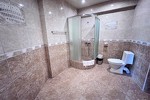 песчаный, песчано-галечный, бетонный. Пляж разделен на зоны, каждая из которых предназначена для разного вида отдыха. Покрытие из мелкой гальки обеспечивает пологий вход в море. Пляж оснащен спасательными пунктами, медицинским кабинетом, лежаками, теневыми навесами, душем с пресной водой, раздевалкой, кафе» -спортивные площадки -тренажерный зал - зона барбекю с мангалом - столовая - кафе "Терраса" - кафе "Эйва в Изумруде"