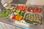 5-разовое — завтрак, обед, ужин («шведский стол») и порционно — полдник и сонник (лобби 1 эт). Мороженное, попкорн, лимонад, выпечка в течении дня. Ресторан расположен в отдельно стоящем здании. Питьевая вода в кулерах — 24 часа