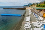 Собственный мелко-галечный пляж, оборудован теневой зоной, лежаками, полотенцами, напитками(вода и лимонад бесплатно). Расстояние до пляжа 1 000 метров. Трансфер собственный – шаттл бас для всех гостей отеля.