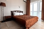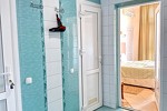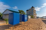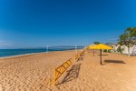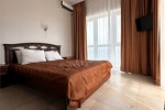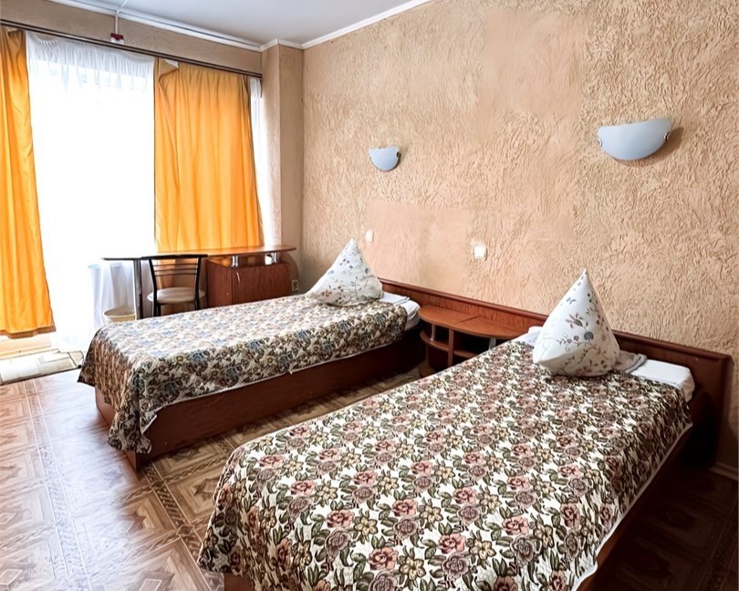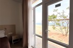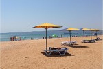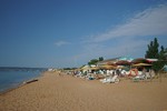 оборудованный песчаный, длина 800 м. Услуги за дополнительную плату: шезлонги, пункт проката (волейбольная и футбольная площадка). Для проживающих в 4-этажном корпусе шезлонги бесплатно, для проживающих в домиках 350 руб. - водные развлечения - бар на пляже - детский игровой городок на территории пляжа