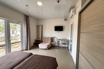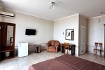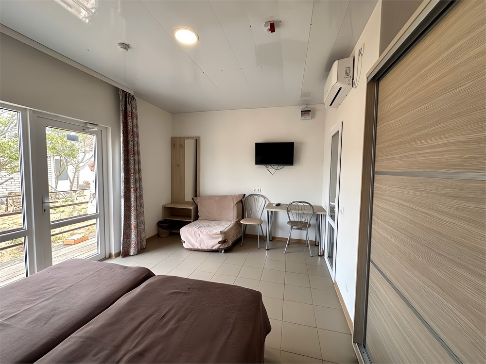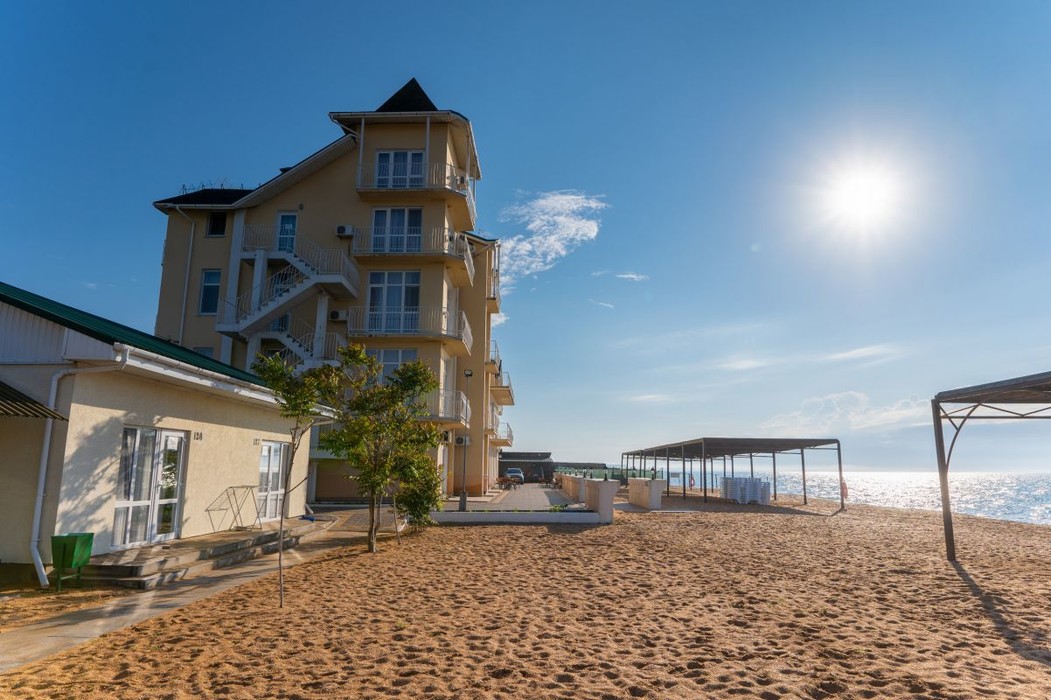 Ухоженная территория, уютные домики, спокойная атмосфера, великолепный песчаный пляж, протяженностью 800 метров, широкий, с удобным заходом в море, развитая инфраструктура возле отеля сделают отдых приятным и беззаботным. Близость отеля к Крымскому мосту и отсутствие горного серпантина по дороге к отелю так же является преимуществом. Объект прошёл классификацию. Реестровый номер - С912025006443 в едином реестре объектов классификации в сфере туристской индустрии Новости:Одноэтажные домики (каменные домики с выходом и видом на море на 1-й линии с №1 по №35 в 2026 году временно закрыты, планируются к запуску позже после ремонта).