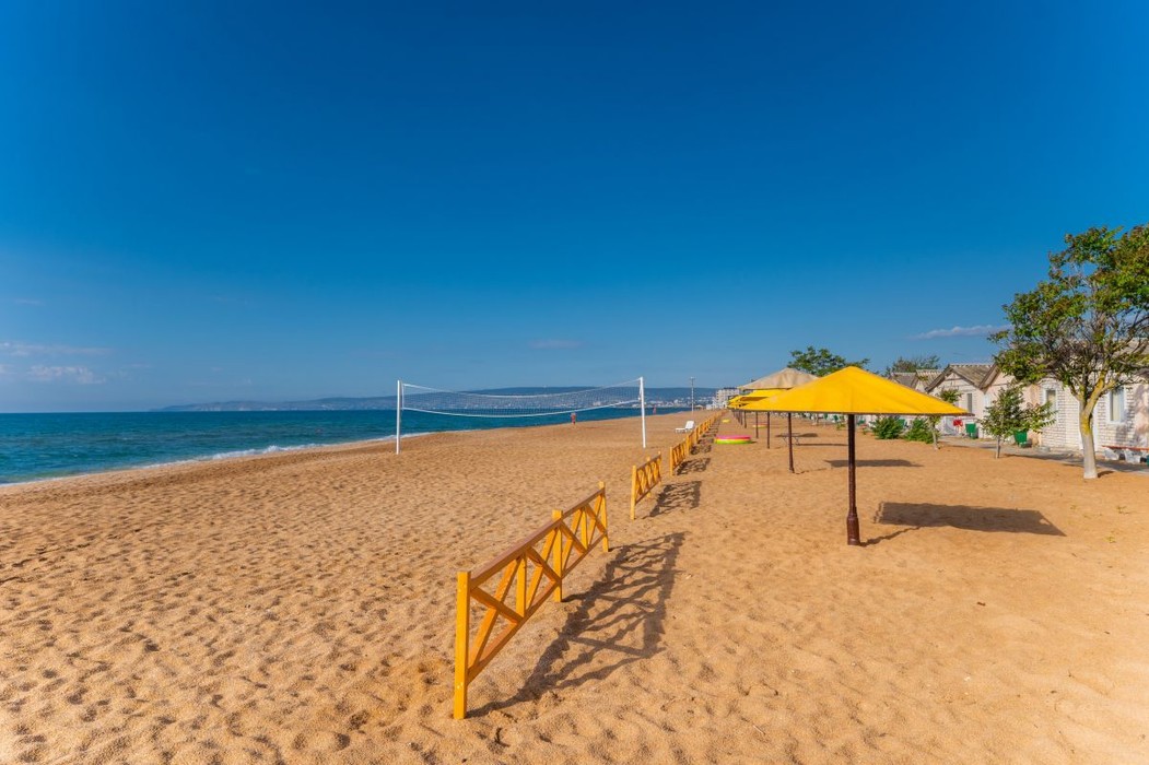Главный плюс - расположение в самой популярной курортной зоне Феодосии - Золотой пляж. Это настоящее сокровище Крыма - километры широкого пляжа с золотым песком и мягким заходом в море. Комплекс находится прямо на первой линии!