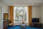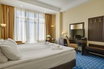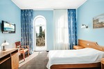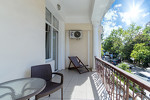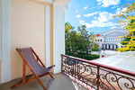 Большой Ливадийский дворец - бывшая летняя резиденция последнего российского императора Николая II - главная достопримечательность Ялты. Ливадийский архитектурно-парковый комплекс - один из выдающихся памятников архитектурного и паркового искусства. Дворец возведен по проекту замечательного ялтинского архитектора, академика Н.П.Краснова (1865-1939) в стиле итальянского Возрождения. В Ливадийский дворцовый ансамбль, помимо Большого дворца, входят свитский корпус, дворец министра двора барона Фредерикса, сооруженные одновременно с дворцом, дворцовая церковь во имя Воздвижения Честного Креста, построенная в 1872 г., и итальянский дворик.