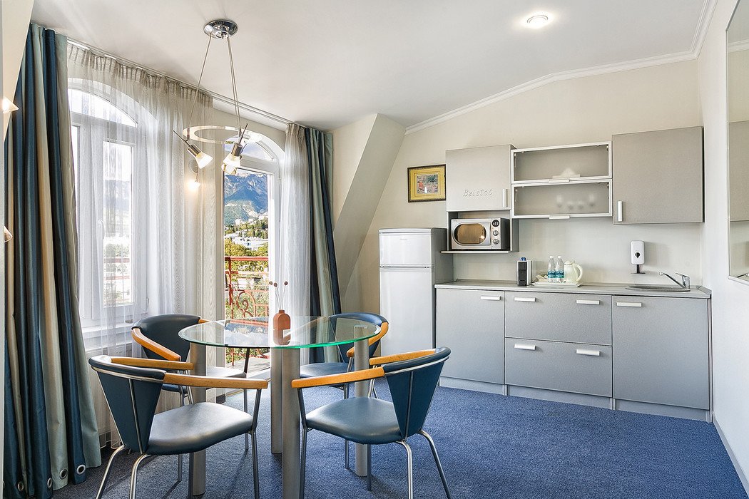 Канатная дорога на Ай-Петри. Из Мисхора по канатной дороге можно попасть на плато Ай-Петри. Это самая длинная канатная дорога в Европе. Путешествие дает возможность увидеть величественные горы, дикую красоту ущелий, таинственный мрак пещер, неповторимую панораму Южнобережья. На Ай-Петри находится метеостанция, основанная в 1895 г. Здесь можно прикоснуться к Ай-Петринскому меридиану, отмеченному геодезическим знаком - металлическим глобусом на гранитном основании. С видовых площадок открывается чудесная панорама Южного берега. На юго-западе вздыбились знаменитые Ай-Петринские зубцы, напоминающие зубы огромного дракона. Воспользовавшись канатной дорогой Мисхор-Ай-Петри можно совершить чудесное путешествие по воздуху. Двадцать минут и вы на высоте 1200 м!