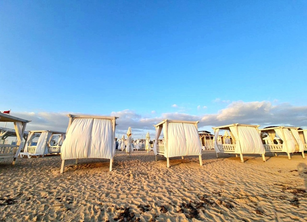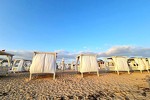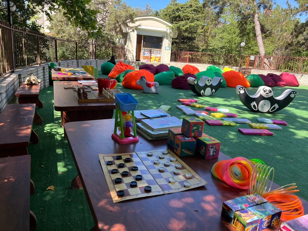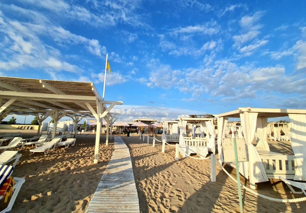 собственный, песчаный, благоустроенный (лежаки, теневые навесы, летние душевые кабины, питьевые фонтанчики, бары, медпункты), в 1200 м от санатория. К пляжу бесплатный подвоз по графику. - крытый бассейн с морской подогреваемой водой ( работает в межсезонье) - тренажерный зал - волейбольная площадка - баскетбольная площадка - зимний и летний клуб - анимационные программы - детские площадки - услуга " дети под присмотром" - сейф - банкомат - библиотека - автостоянка - прачечная
