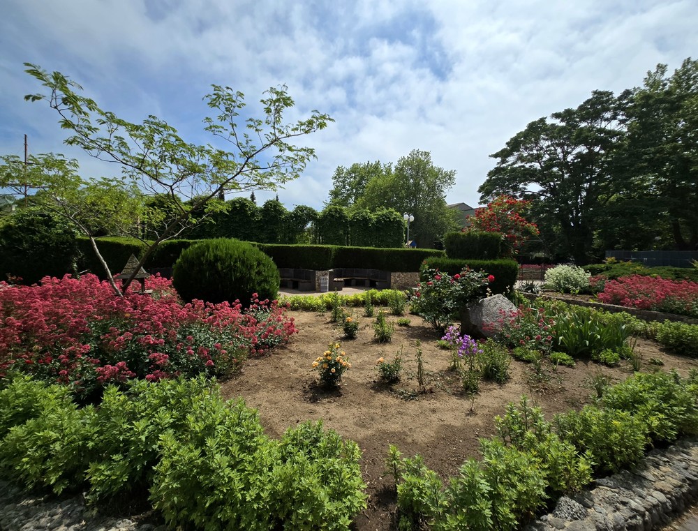на территории парка, площадью 6 га, где произрастают около 500 видов растений из Никитского ботанического сада.